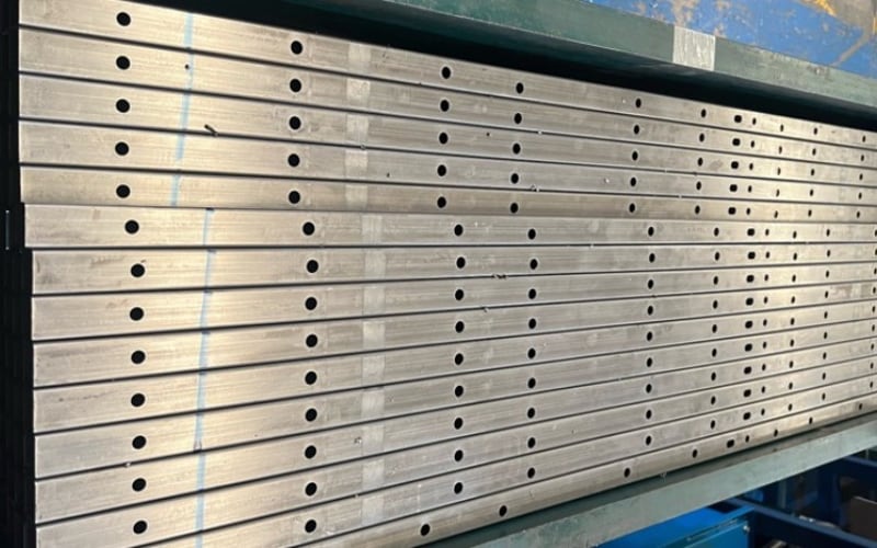 Tubos cuadrados con procesos de barrenado para estructuras de asientos.